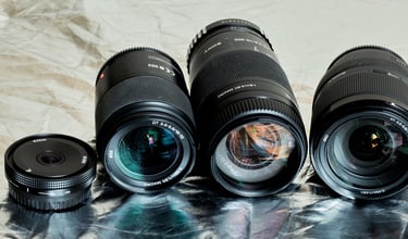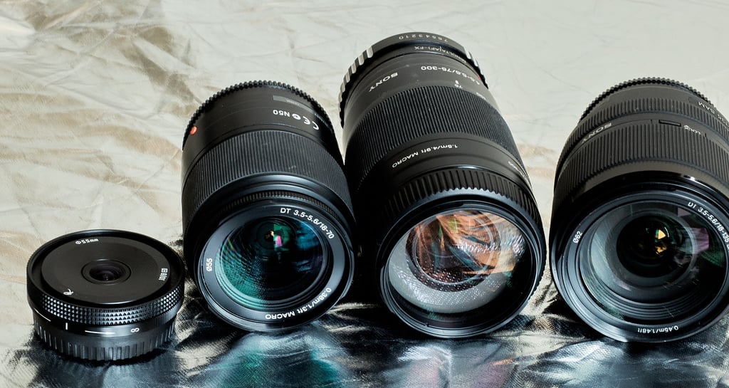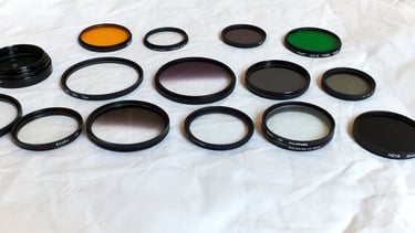 Além desses equipamentos, quando necessário uso lentes auxiliares Sony com diferentes distâncias focais conectadas na minha câmera principal. Tenho ampla coleção de filtros ópticos para produzir o mais diversos efeitos já na captura das fotos, como diminuição de reflexo, suavização de pele, contraste aumentado para fotos em branco e preto, entre outros.