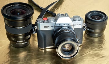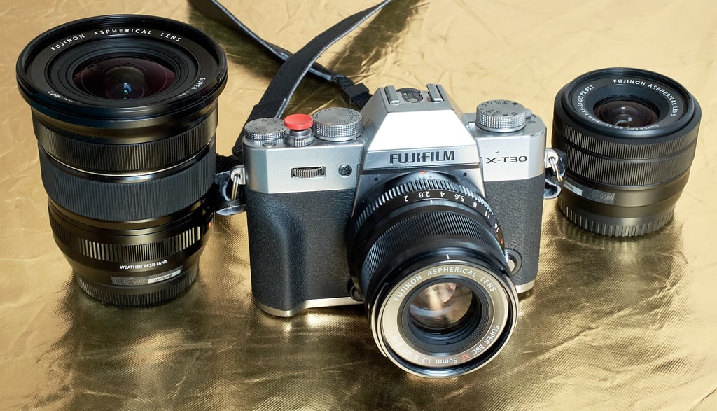 Trabalho com lentes e câmera da linha X da Fujifilm que são conhecidas pela sua alta qualidade de imagens digitais em equipamentos compactos, com design retrô, porém com moderna tecnologia embutida. São câmera mais leves, menores, menos intimidadoras, com a mesma tecnologia moderna de sensores e de lentes das câmera pretas grandonas que estamos acostumados a ver em eventos.